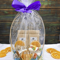 Корзина с чаем и сладостями на любой праздник «Три сладкие апельсинки»12 000 ₸